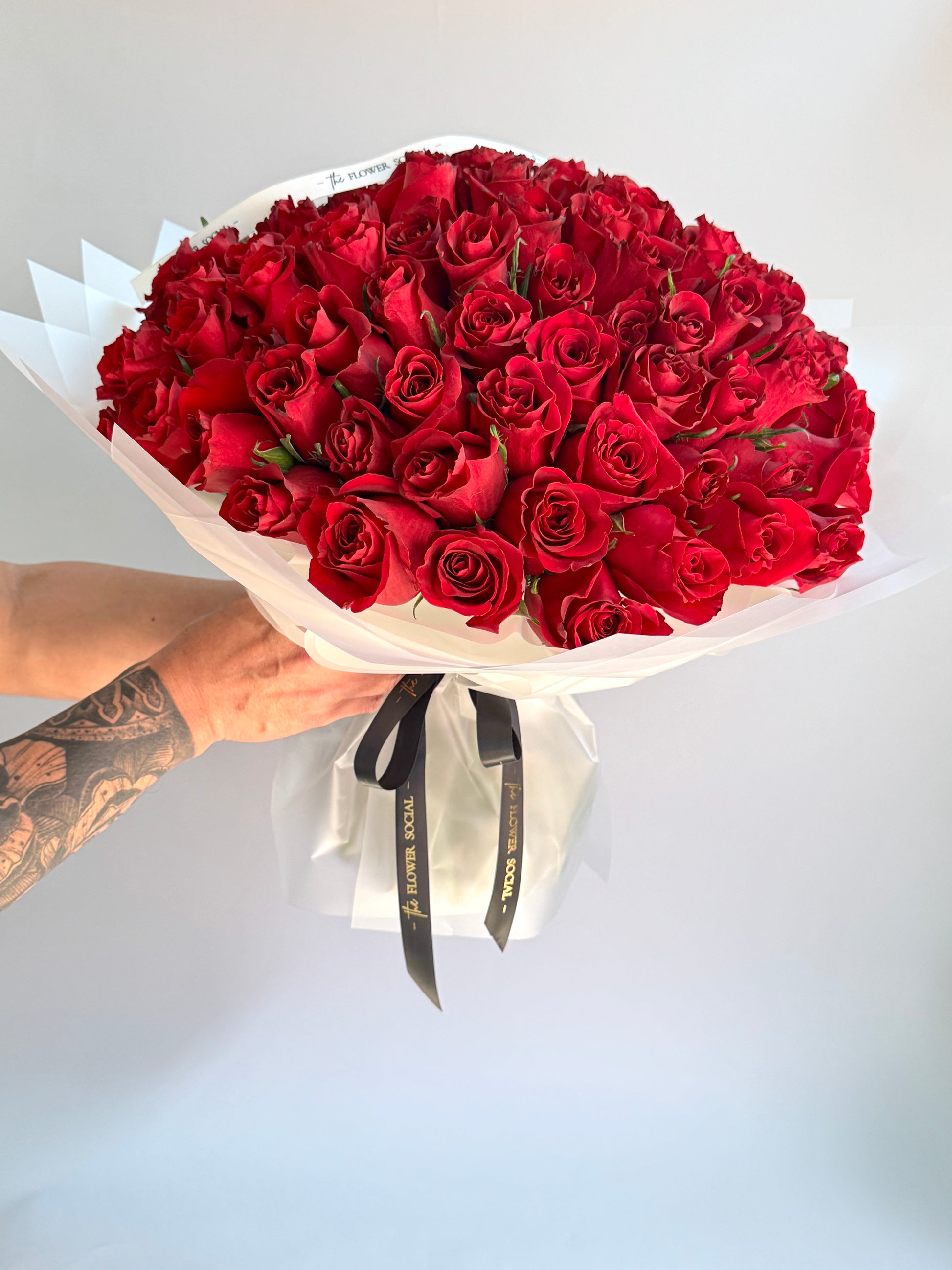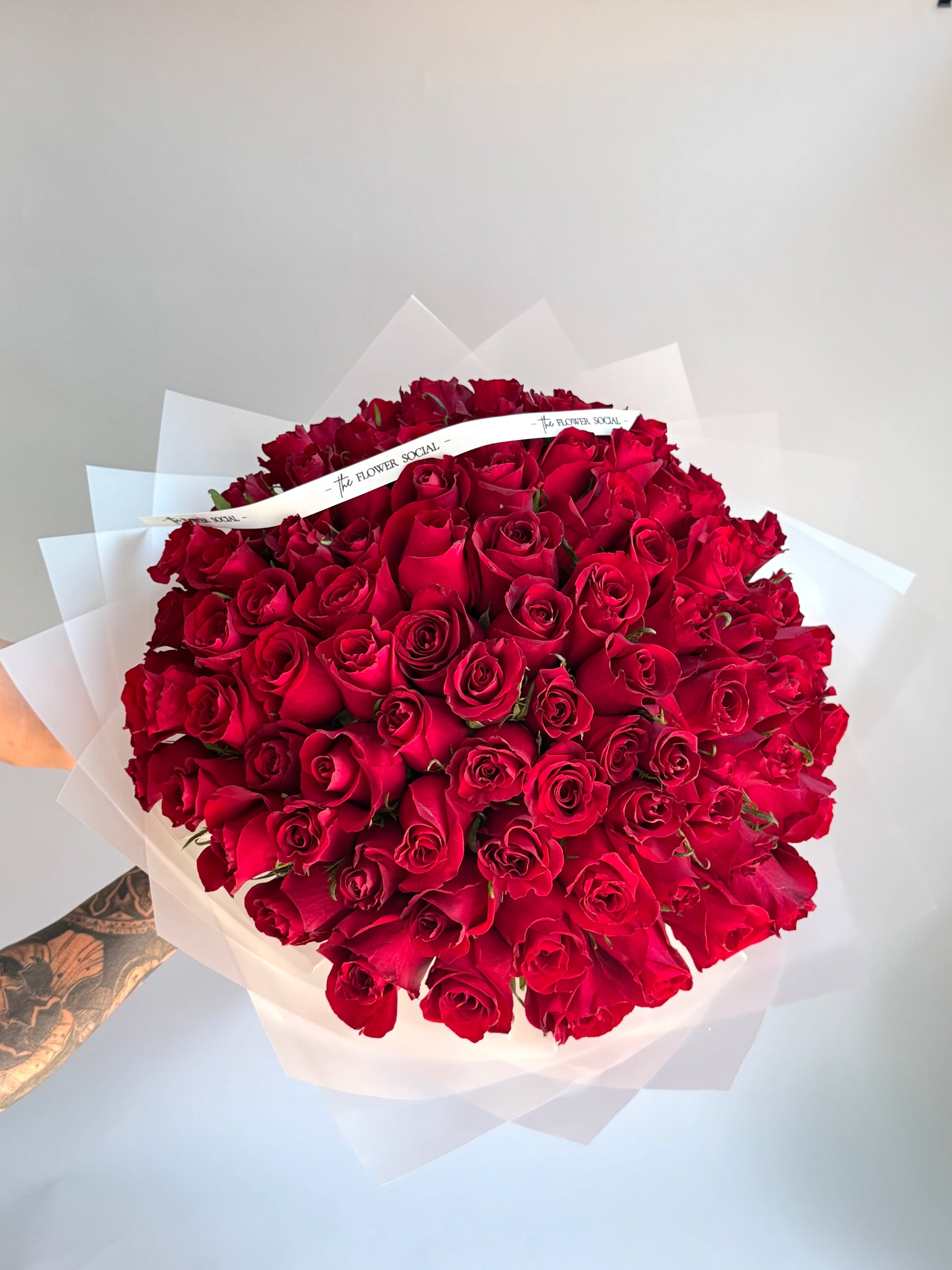 This beautiful bouquet of 100 red roses is the perfect gift for that special someone. The vibrant red color evokes feelings of love and passion, making it a meaningful gesture for any occasion. Show your love and make a lasting impression with this stunning bouquet.