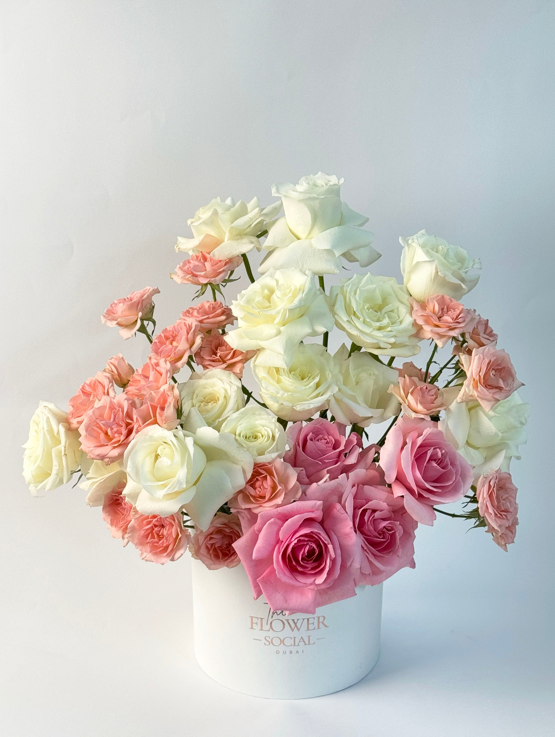 This beautiful bouquet features a stunning mix of pink, peach, and white roses, making it a perfect gift for a new mother, a get well soon gesture, or to brighten someone's day. Give the gift of color and joy with Pinks and Peach Bouquet.