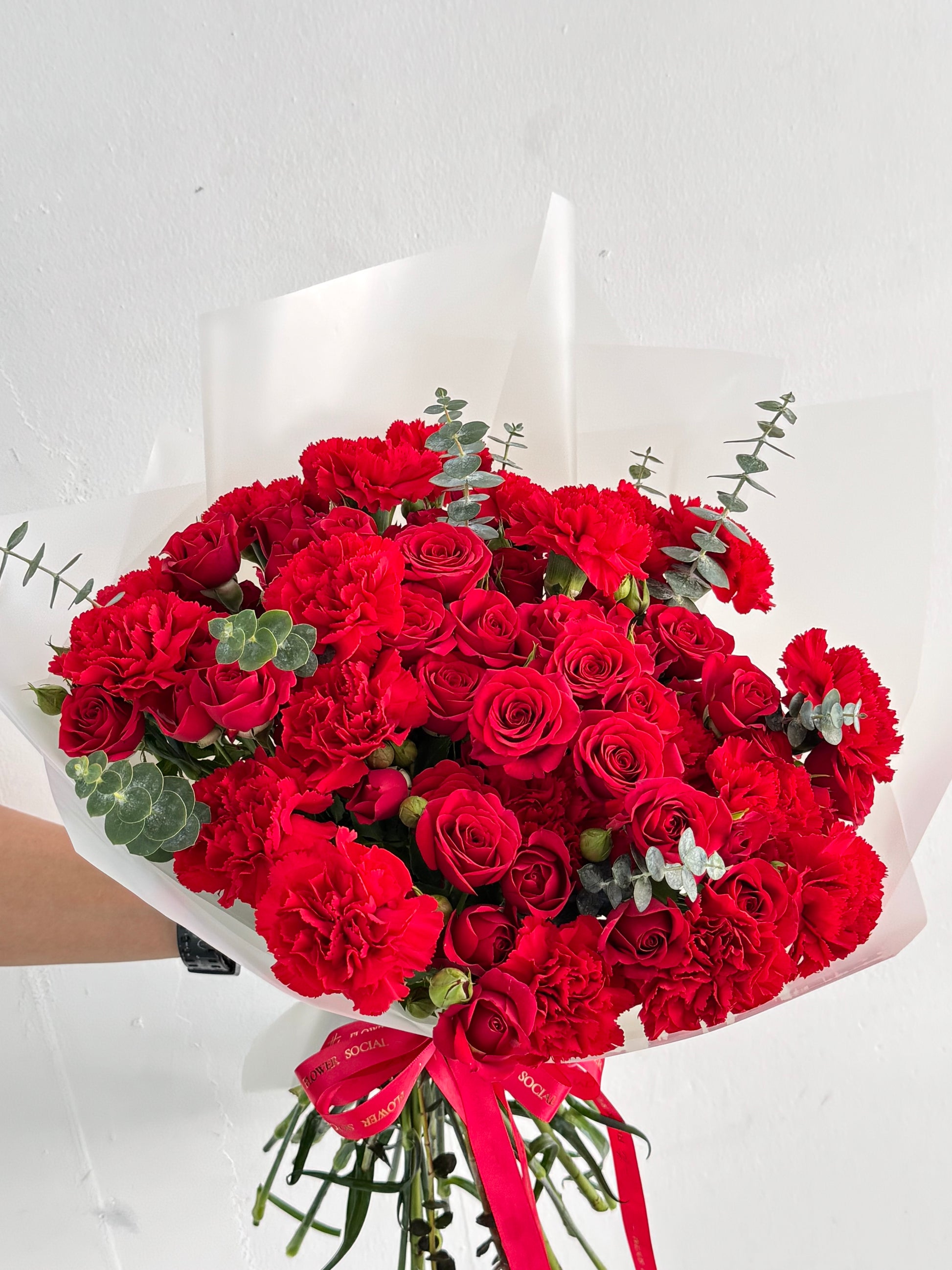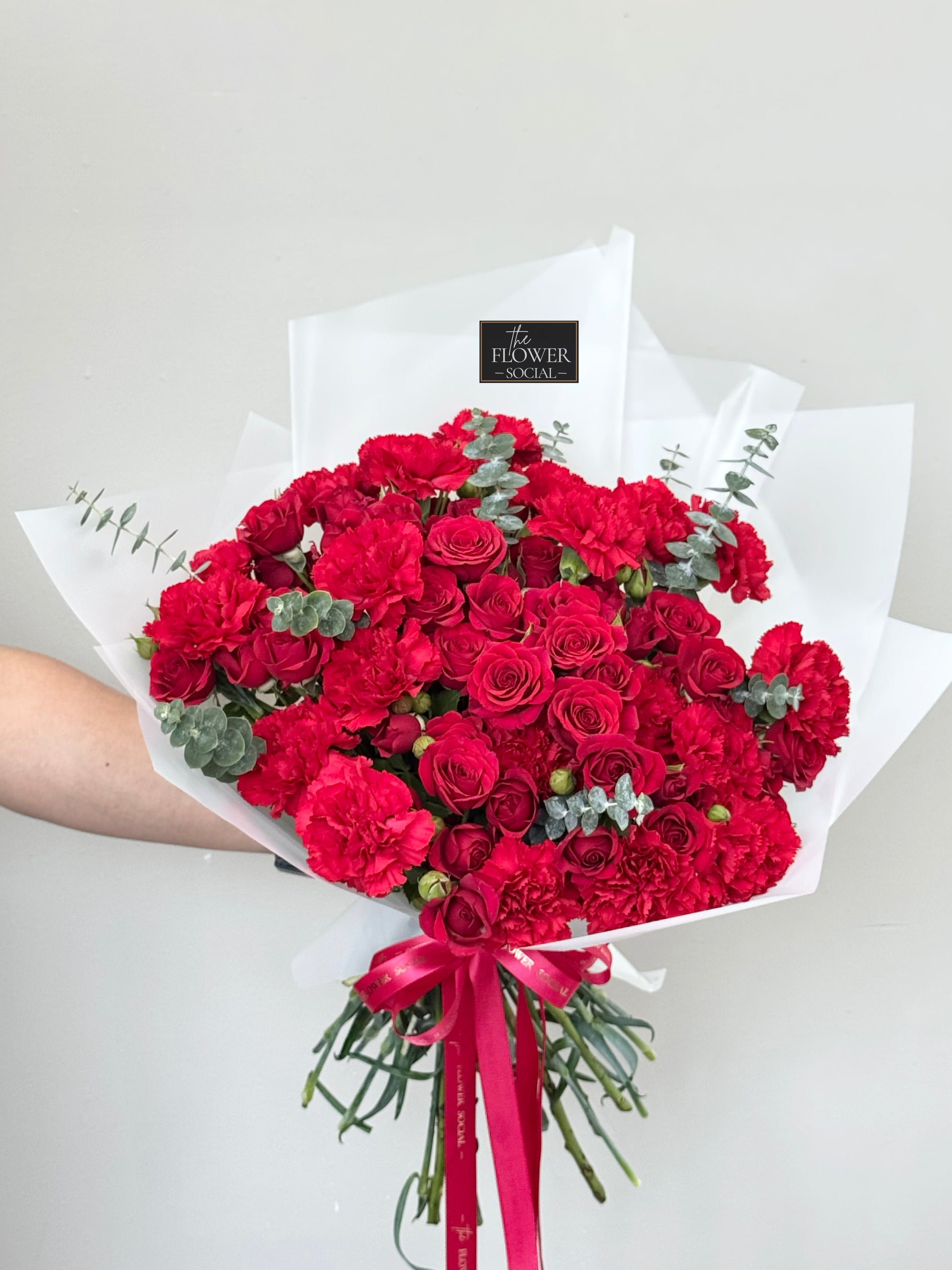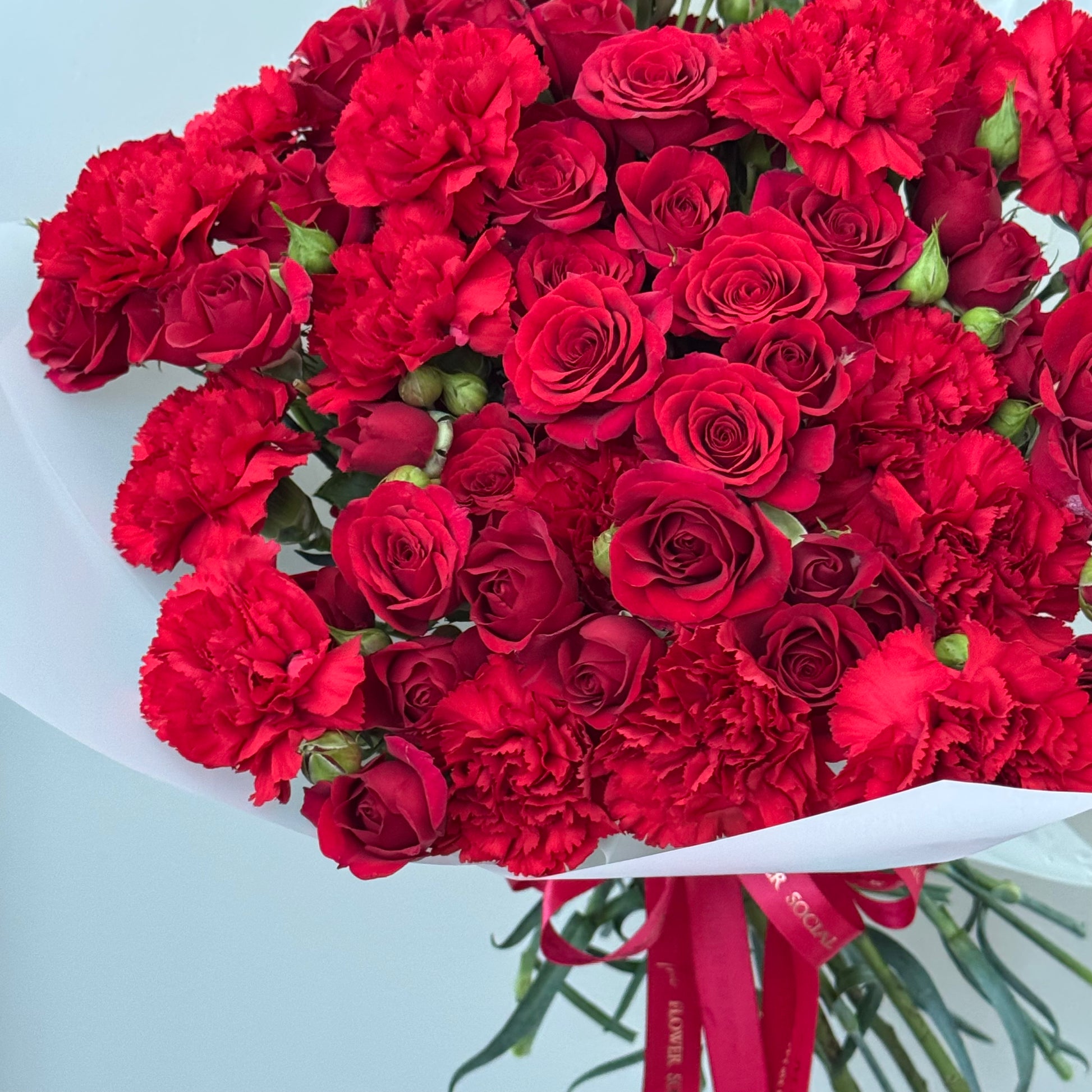 This stunning bouquet features a beautiful combination of spray roses and carnations, creating a romantic and delicate arrangement. Perfect for expressing love and admiration, this bouquet is sure to delight.
