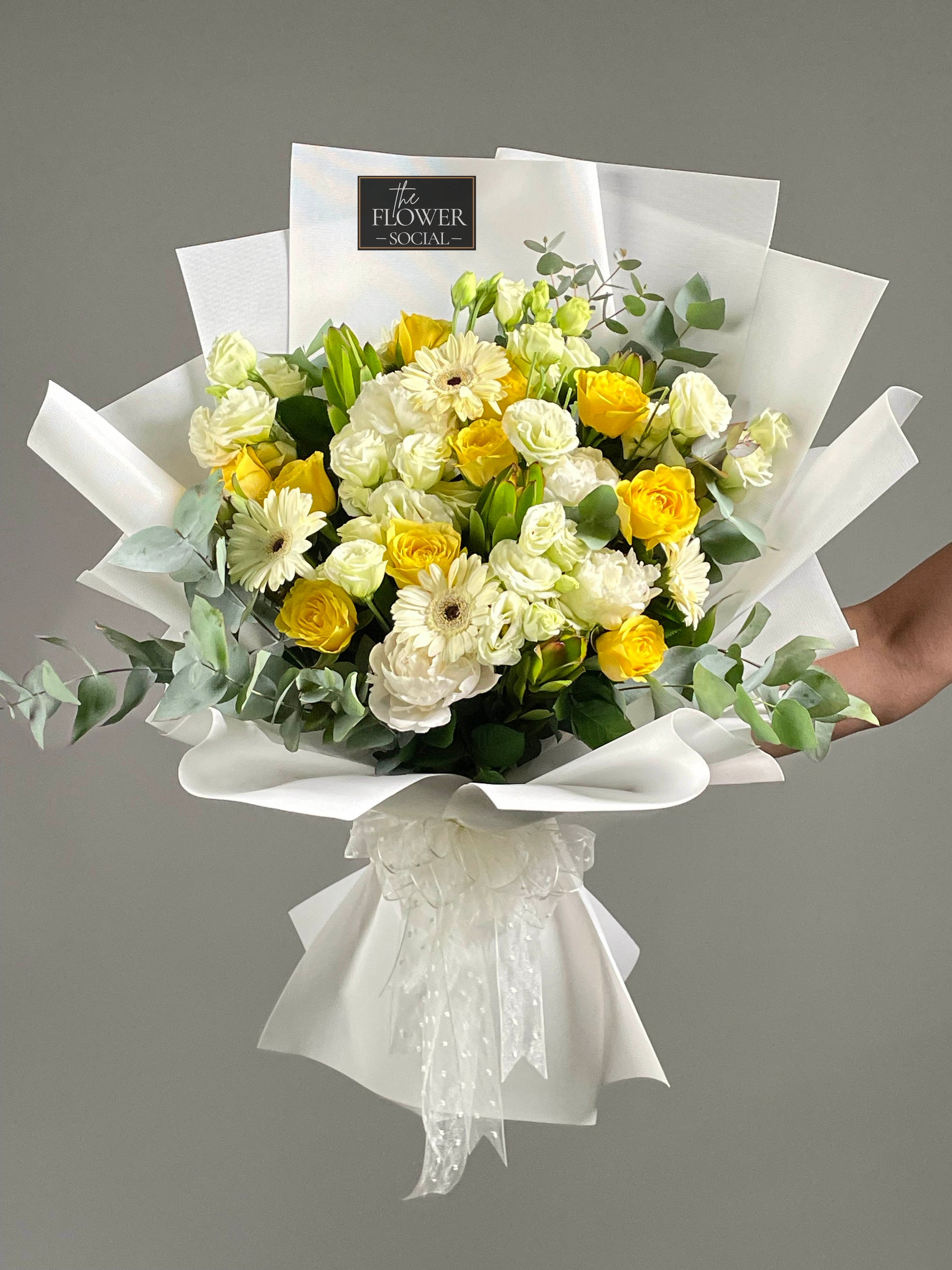 Sunlit Serenity, combines the beauty of Gerbera, spray roses, and eucalyptus to create a sense of serenity and tranquility. With vibrant hues and calming scents, this arrangement is perfect for any space and is sure to bring a sense of calm to your day.
